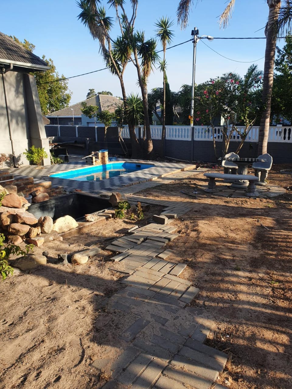 Yes, a swimming pool is available for use at Ludinz Accomodation Self Catering. Enjoy the water!