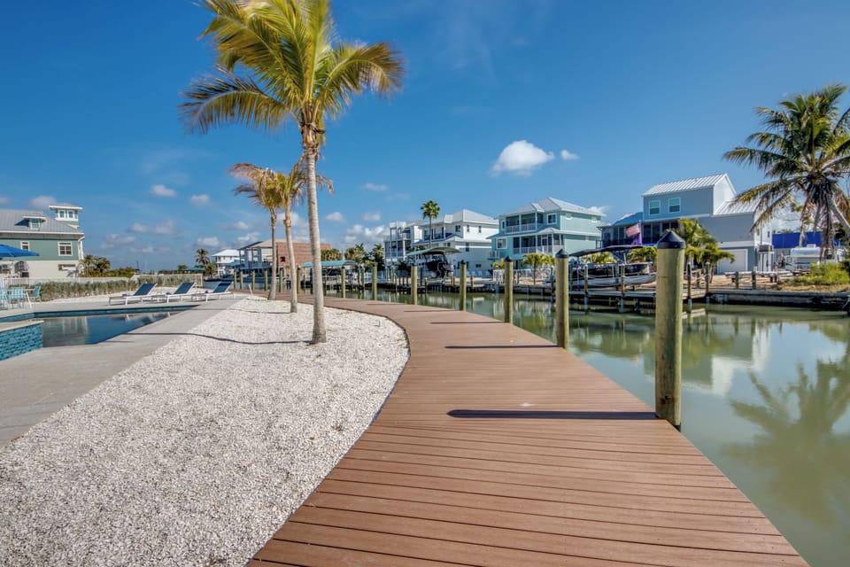 • Open dining room and living area, overlooking the back bay canal