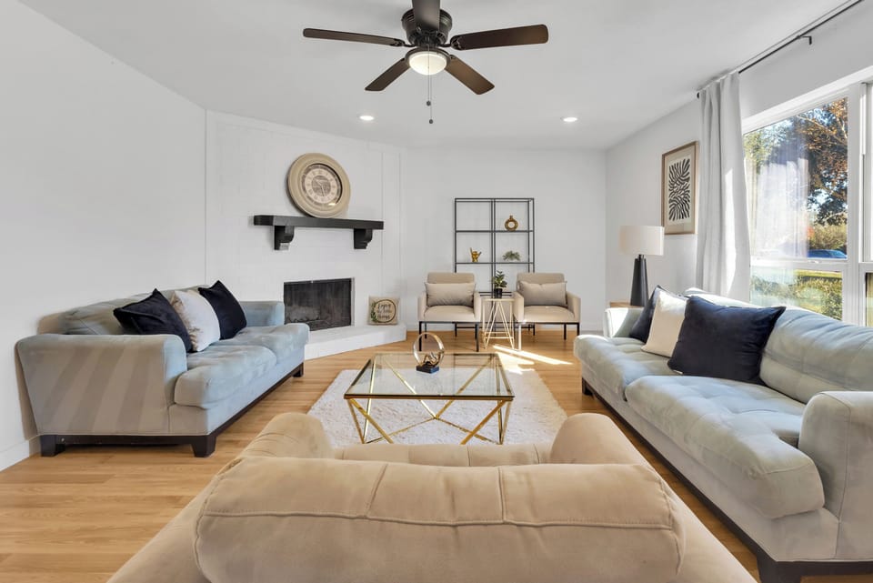 LIVING ROOM: Comfy Sofas, TV with Roku