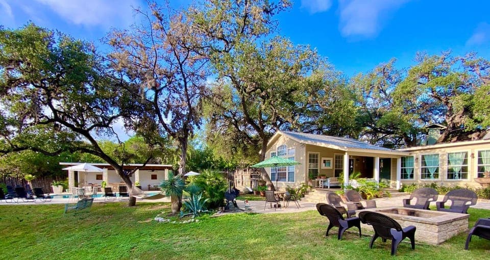 Enjoy the best of Concan in our House, Historic Gated Estate, Pool, Cabana, 2 Kitchens, Lush, Kayaks, Walk 2 Frio!. A stunning property with amenities including No pets allowed, Family friendly and Non-smoking, and more.