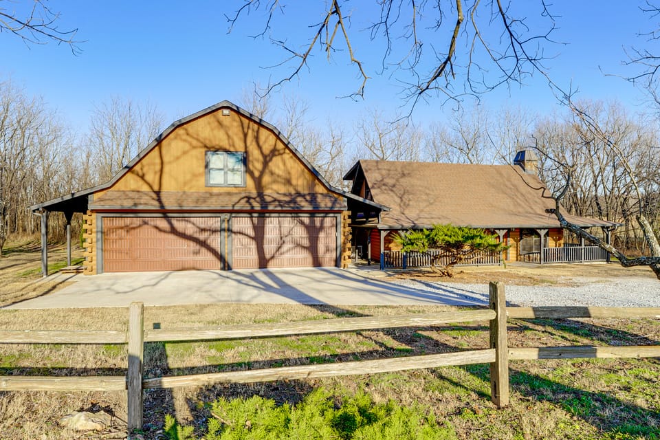 Adventure and leisure collide at this expansive vacation rental — ‘The Cabins at Big Springs!’ Whether you’re here to float on the Elk River or explore the local hollows, this log cabin provides a comfortable base. Kids will love the gaming station while the adults unwind by the fireplace or the outdoor fire pit. Between the cabin and bunkhouse, there are 5 bedrooms and 3.5 baths, ensuring a seamless stay for your group!