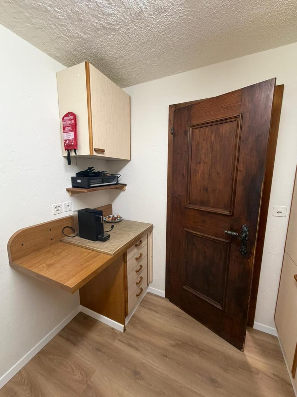 De keuken was schoon, maar oud. Daardoor sloten niet alle kastjes goed.