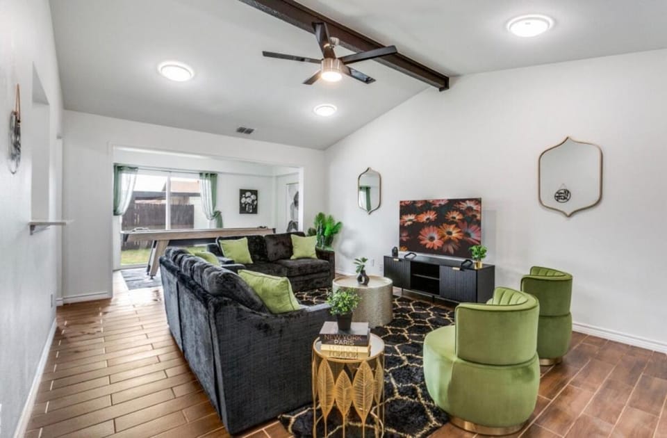 Business stays, family stays, couples stay, getaway vacation, and rental in Richardson at Stylish 3BR/2B 2patios/ game-room/ WFH/ Piano/ Bar UTD/Galleria Kids/Groups/Fam for $338 for your next trip.