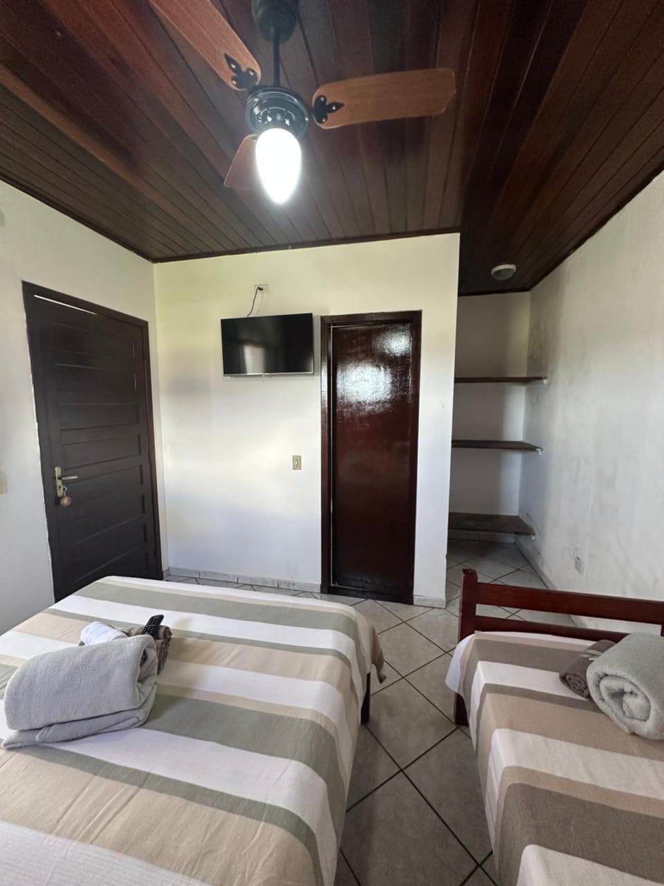 O quarto é bem limpinho, espaçoso, assim como o banheiro, tudo muito organizado e confortável.