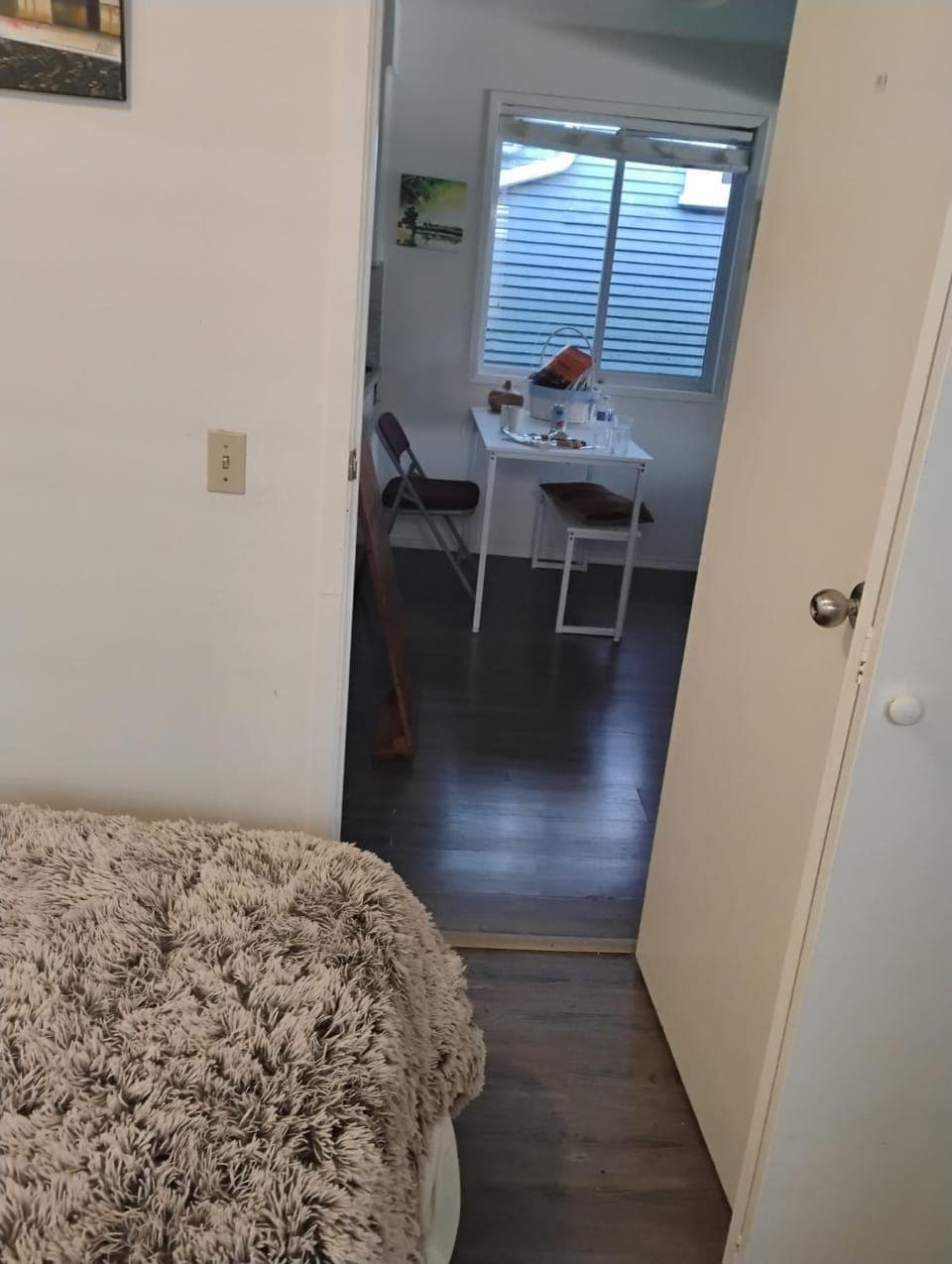 I stayed in a small queen bedded room looking out to the back yard. Parking on the street in front of the house was easy. The bed linens were comfy, but the bed was uneven; despite this I slept well. Having a kitchen with basic supplies ( coffee, tea , oatmeal) was nice. Things were pretty quiet, although I did hear someone moving around upstairs on the creaky floor. My room was adjacent to the shared bathroom, but I didn't hear anything from it. For an inexpensive overnight, the whole experience was good.