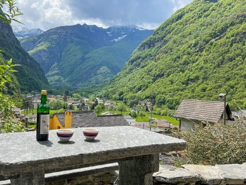 The house is situated on a sunny, quiet hillside above the municipality of Cavergno. The village centre with post bus stop, butcher's shop, bar and pizzeria is a five-minute walk away. Locarno is around 30 minutes away by car. Hiking trails through the Maggia Valley start right on the doorstep, and the surrounding area offers grottos, village markets and excursions to Cevio or Locarno.