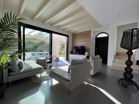 Welcome to our modern holiday home in the idyllic village of Barcuzzi on the south-western shore of Lake Garda, where Mediterranean flair, surrounded by palm and olive trees, creates a unique holiday atmosphere. This domicile is the perfect retreat for families and friends who want to get together in a peaceful atmosphere and leave everyday life behind. Enjoy the Mediterranean architecture and let yourself be enchanted by the Italian way of life.