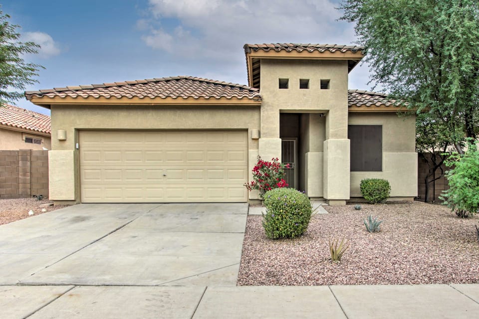 Explore the Phoenix area with ease when you book this bright and airy Surprise vacation rental! Boasting a home office space and a private outdoor oasis with a covered patio, gas grill, and swimming pool, this 4-bedroom, 3-bathroom retreat is the perfect spot to work or play. Spend your days golfing, hiking, or cheering on your favorite teams at a nearby spring training facility! When evening comes, head back to enjoy a home-cooked meal and a family movie on the Smart TV. Adventure awaits!