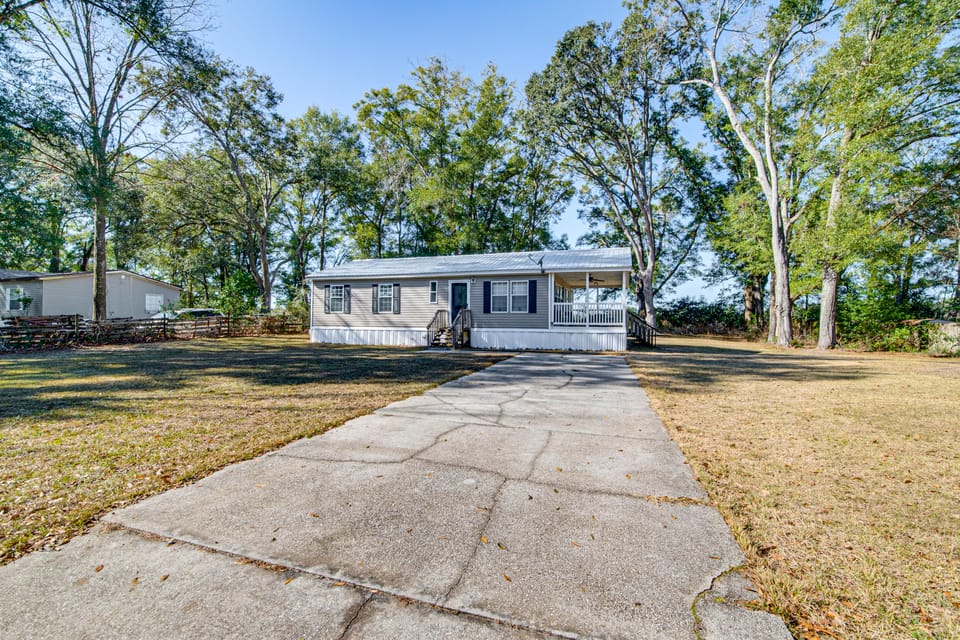 Experience the best of Natural North Florida from this 2-bed, 2-bath High Springs vacation rental! Kayak along the Santa Fe River or search for manatees at Ruth B. Kirby Gilchrist Blue Springs State Park, then visit town for shopping and dining. For the college parents, the University of Florida is just 19 miles away! Ready to unwind? Kick back on the porch with a drink while your furry friends roam the yard.