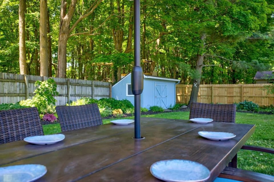 Indulge in a peaceful retreat at Family Getaway: 5 Mins to Lake Michigan | Big Backyard, our elegant House in Holland. Enjoy amenities including Air conditioning, Dryer and Fireplace, and more.