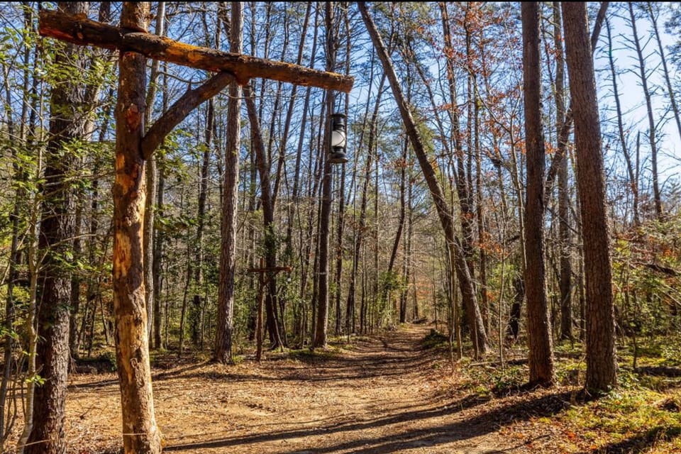 Tucked at the base of Starr Mountain in the Cherokee National Forest, 'Hiker’s Haven' is a unique vacation rental crafted from timber milled on the property. Bullet Creek flows steps from the porch, with bridges to a small island, a fire pit, and a picnic area. Rustic beams, branch railings, and forest views create a cozy escape to relax, unplug, and immerse yourself in nature. Here, the forest isn’t just your backdrop — it’s part of the architecture.