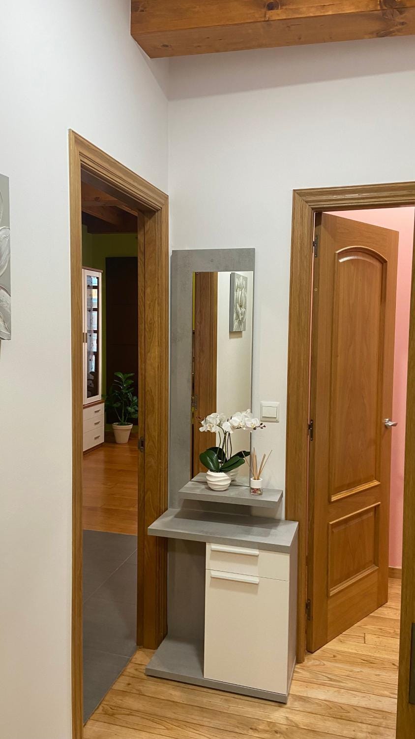 Super renovation of classic town house into wood chestnut & peppermint apartment. Long wooden shuttered windows overlook quiet street leading down to port & up to Plaza Mayor in few mins walk. Great kitchen, dining table & comfy couch. Bedroom cosy, good electric radiators, nice peach bathroom with steamy shower. Very friendly knowledgeable welcome from proprietor, Nicasio.