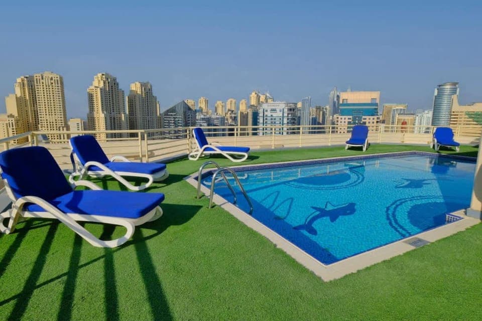 Yes, a swimming pool is available for use at Free housekeeping visits during your stay - StayShort - Cozy Beachside Stay in Dubai Marina Near JBR Sleeps 2. Enjoy the water!