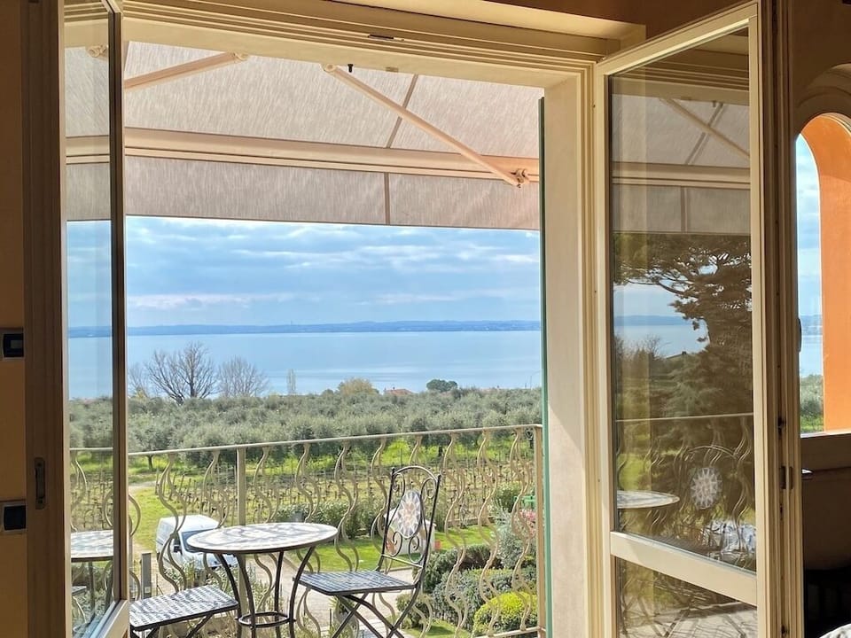 Our wonderful apartment is on the first and second floor of the XV century villa in our beautiful residence Corte Ferrari and is surrounded by flowers, olive trees and vineyards with beautiful views over Lake Garda.