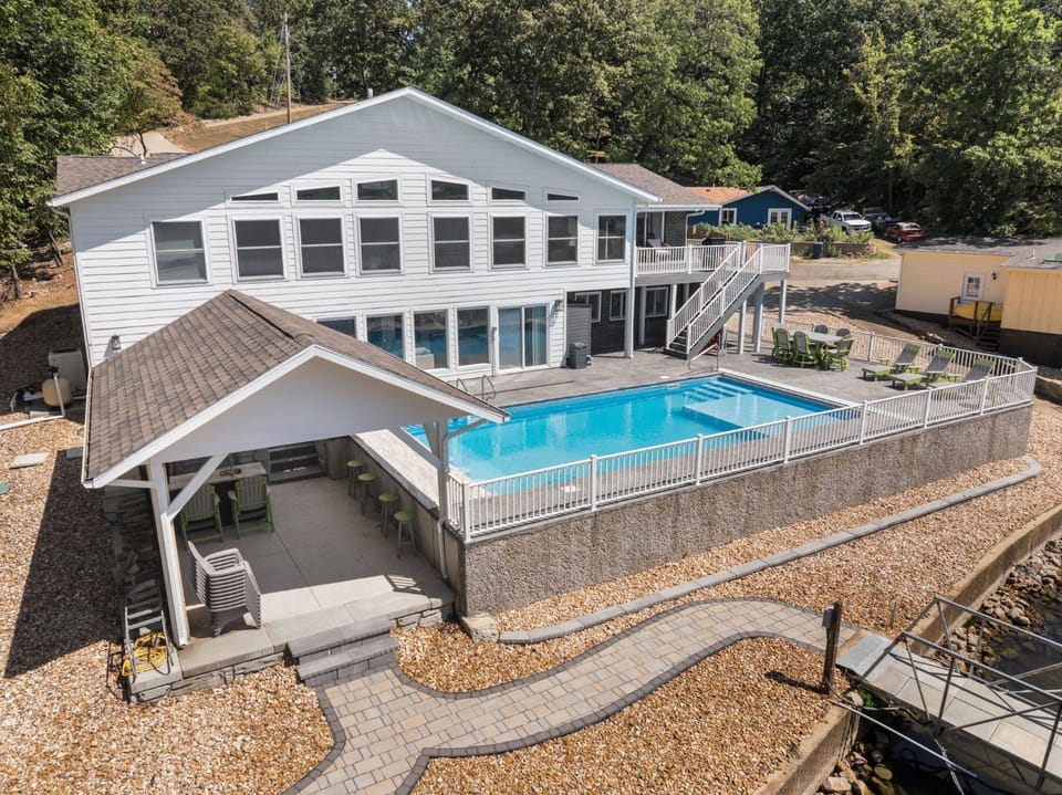 Looking to create some memories in Osage Beach? Look no further than our House, 8500 sf, Sleeps 48 in beds, Pool, Hot Tub, Game Rm, 300 ft lake front, In town. Enjoy top-rated amenities including Air conditioning, Balcony/Terrace and Dryer, and more.