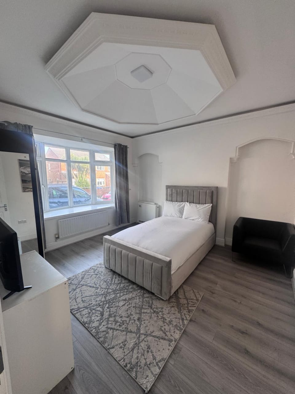 The room was large, basic but functional. There was a large comfortable bed, a chat and a TV plus storage etc. All you need