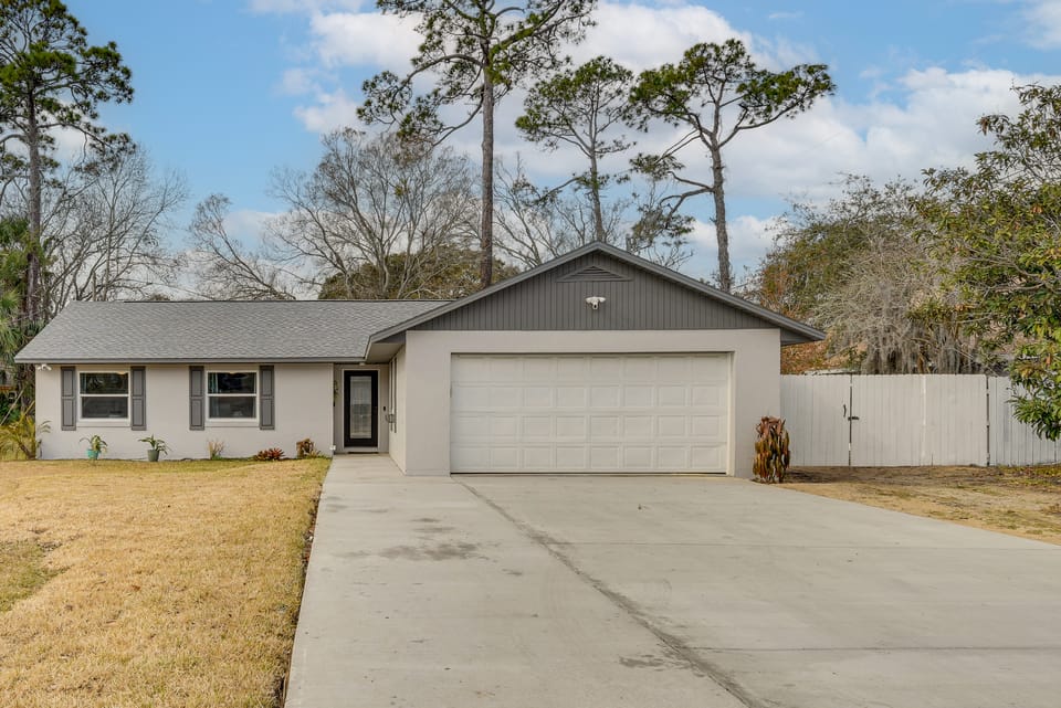 Coastal living is made easy at this Daytona Beach vacation rental! The home boasts a full kitchen, a fenced backyard, and proximity to top attractions. Soak up the sun along the beach, hit the shops at Tanger Outlets, or tee off at LPGA International. Back home, unwind with a drink on the patio before settling in with snacks and a good movie to wrap up your night. Your next Florida adventure is just a click away!