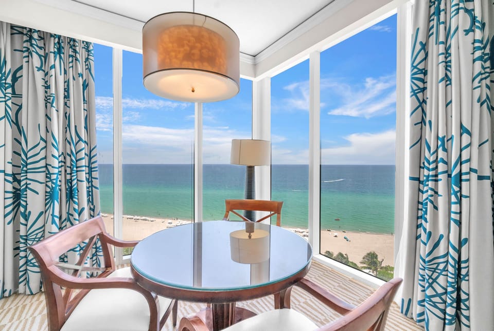 This residence offers upgraded finishes, spacious rooms, and an unbeatable waterfront setting. The master bedroom features a king-size bed, while the second bedroom includes two queen-size beds—each with its own full bathroom. Guests also enjoy a queen-size sofa bed, in-unit washer and dryer, and elegant décor throughout. With access to four restaurants, pools, tennis and soccer courts, a gym, spa, and full beach service, this is the ultimate luxury retreat in Sunny Isles.