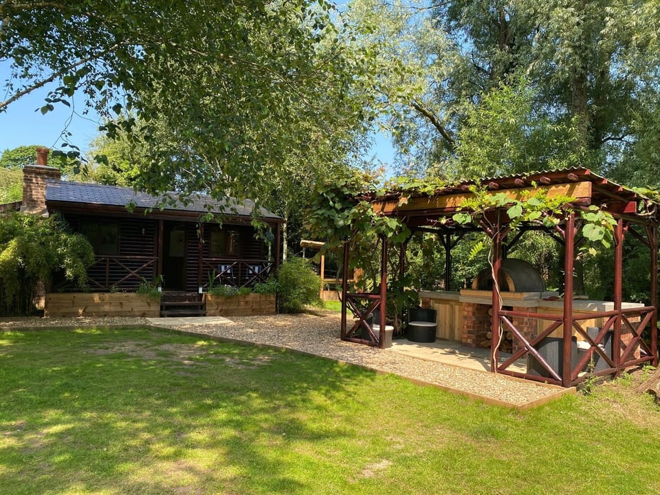 The Cabin provides high quality accomodation with the benefit of a large outside area with Wood Fired Pizza Oven, Swedish Log Fired Hot Tub and Picnic Table.
