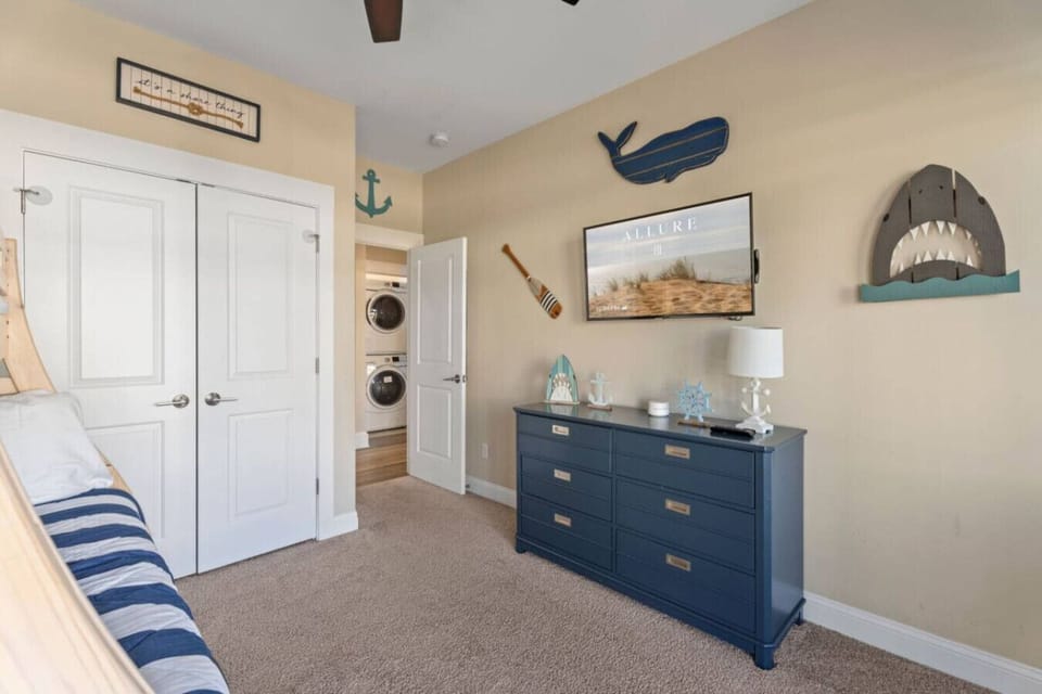 Second bedroom: Full-over-twin bunk beds with a pull-out trundle and smartTV.