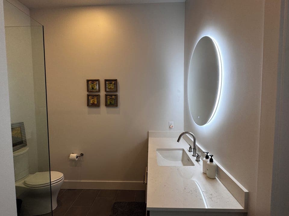 The Master bedroom has windows to enjoy a variety of views with a stand alone bath tub and huge shower. Each guest room has it's own bathroom, one with it's own bathtub and the other a large shower.