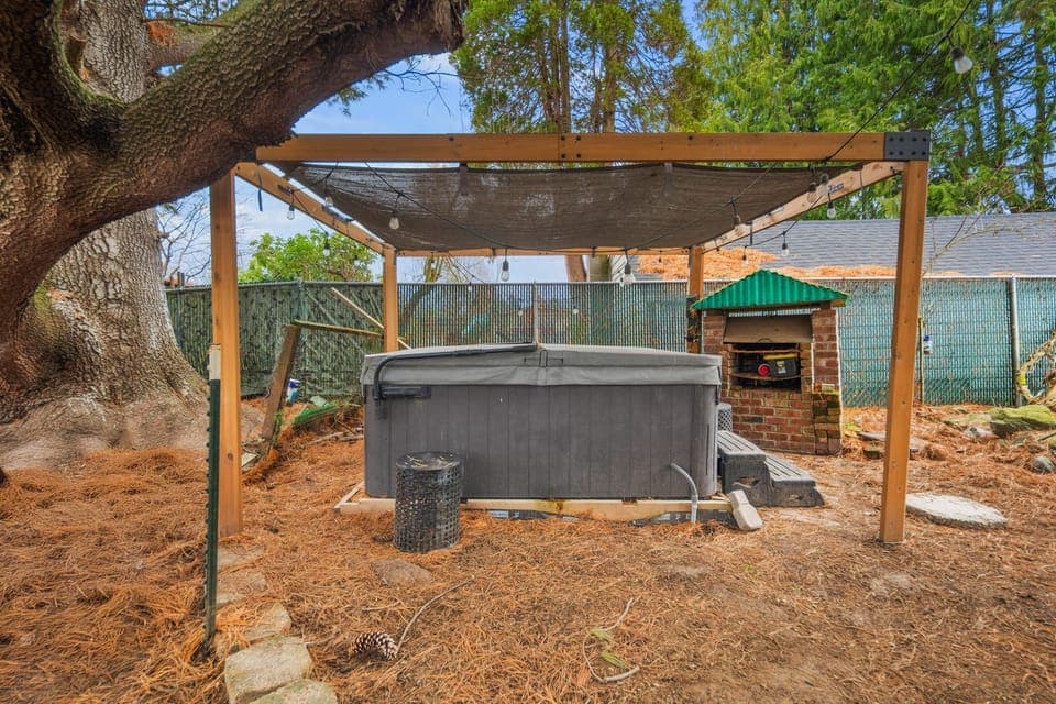 One of the best parts of staying here is the outdoor space. You’re welcome to enjoy the large shared yard, relax on the patio, or soak in the hot tub after a long day. We also have fruit trees and chickens, which give the property its laid-back urban farm feel.