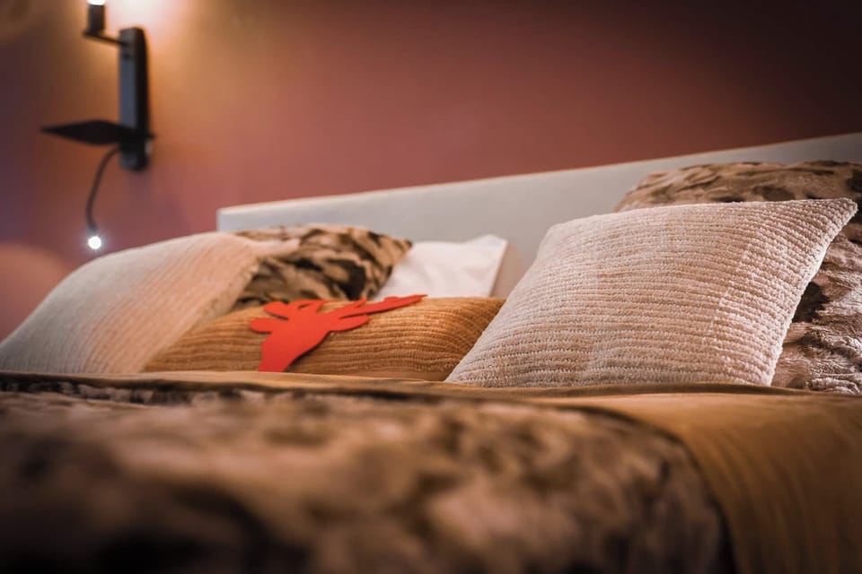 After an active day in the mountains, you can fully unwind here. The soft lighting and comfortable seating area make the room perfect for a quiet moment with a book or a cup of coffee.