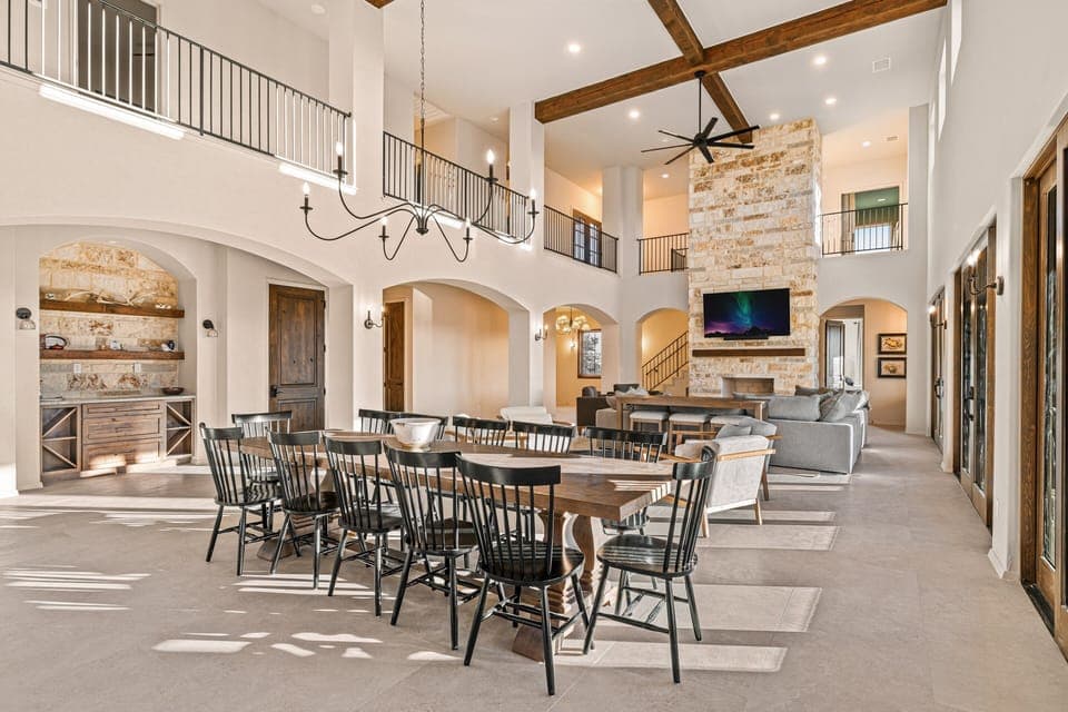 Enjoy the Hill Country wineries and State Parks near Fredericksburg with easy access to and from San Antonio from this gorgeous home! The property is on 135 hilly acres and comfortably sleeps up to 25 guests that want to get the full Hill Country experience!