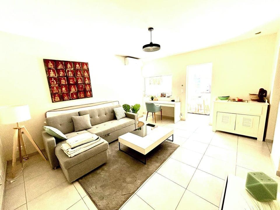 While you're here, you can enjoy all the comforts of home and more, including internet and air conditioning. Other amenities include laundry facilities, towels, an ironing board, and soap.