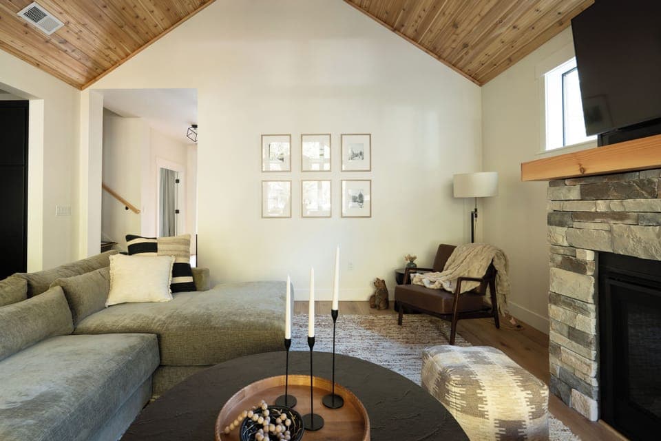 After a day exploring the mountain, unwind in the private hot tub under the trees, gather around for games and movies, or cook a full meal in the fully stocked kitchen. The open living spaces make it easy for everyone to spend time together while still having room to spread out.