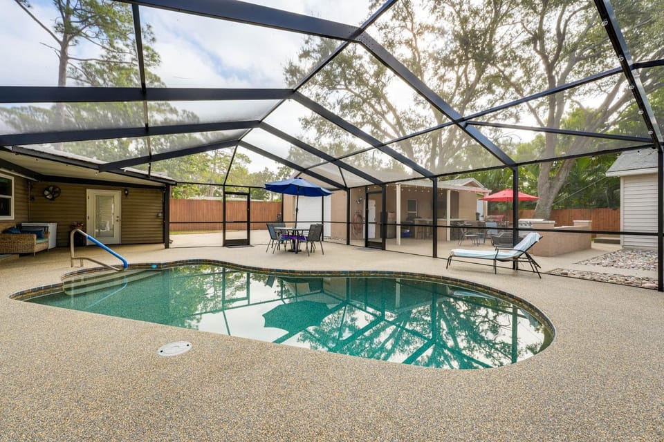 Discover the beauty of Bay Pines with a stay at 5min to Beach! Tropical Vibes•Pool,Spa,Games&More, a top rated House with amenities such as Pets allowed and Family friendly, and more.