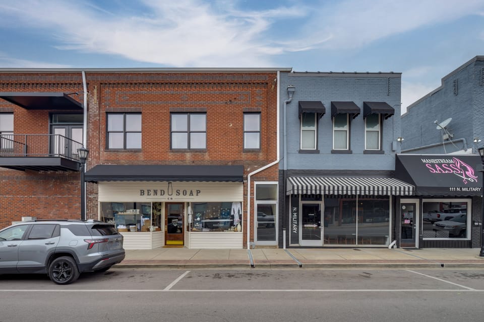 Trade your car keys for walking shoes at ‘The Cornerstone Loft,’ a Lawrenceburg vacation rental set right on the historic square. This newly built condo pairs bright interiors with simple comforts, including a private balcony overlooking downtown. Grab a latte steps away, stroll past the Davy Crockett Statue, or spend an afternoon at nearby David Crockett State Park. Explore at your own pace!