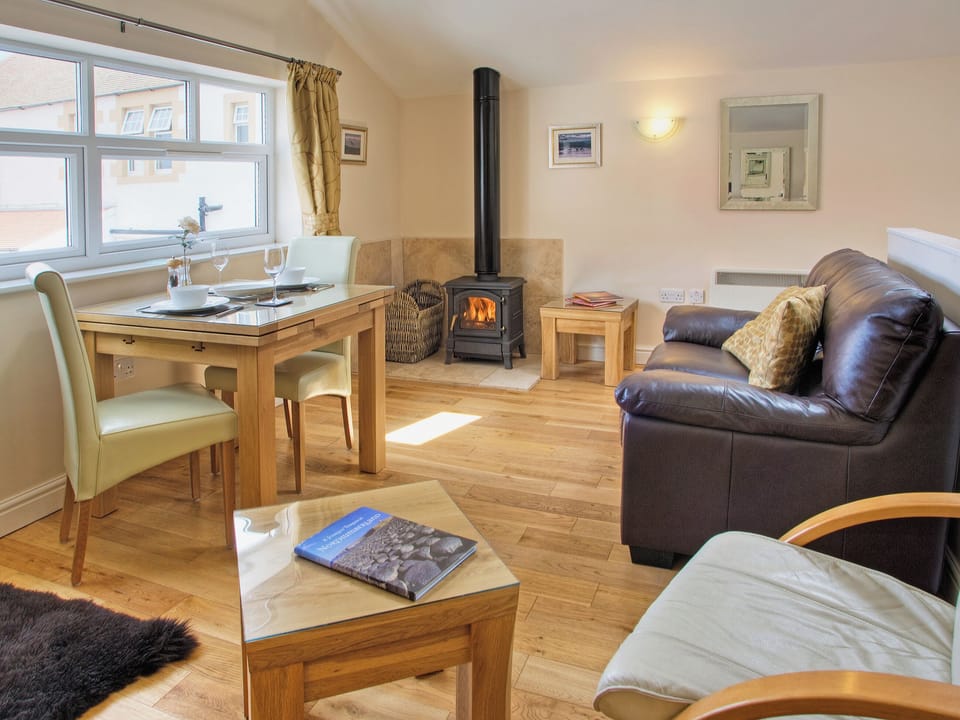 Luxury first floor studio apartment commanding stunning views of the sea and to the Farne Islands.. 12 external steps to entrance.