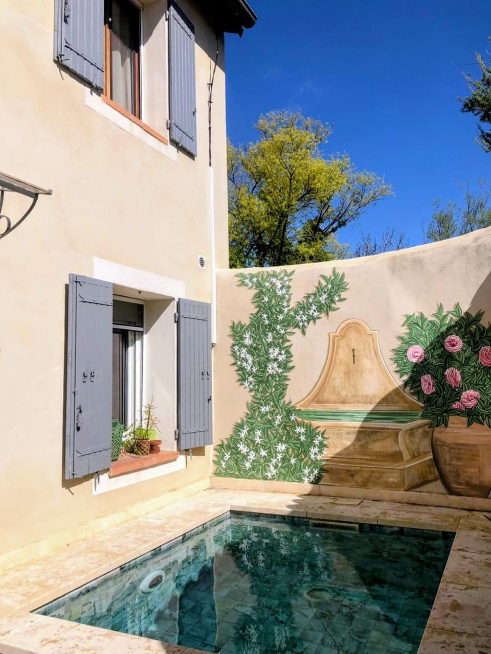Yes, a swimming pool is available for use at Maison camelias bord de Sorgue Piscine Parking clim. Enjoy the water!