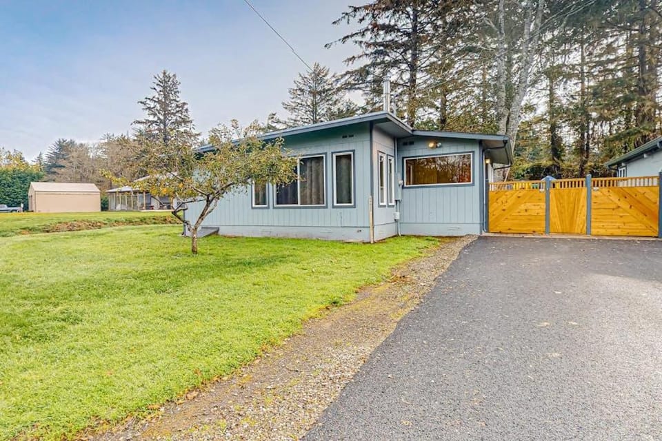 Business stays, family stays, couples stay, getaway vacation, and rental in Coos Bay at Home near the ocean with wood stove, large yard, washer/dryer, streaming, patio for $131 for your next trip.