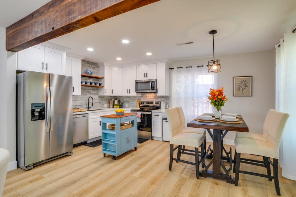 Small-town charm meets modern comfort at this thoughtfully updated Modesto vacation rental. The home is ideal for those visiting family or in town for business, complete with all the comforts like a full kitchen, 3 bedrooms, and in-unit laundry. During downtime, walk to local bars and cafes and explore scenic Tuolumne River trails. Secure your stay and get ready to live like a local in the heart of the Central Valley!