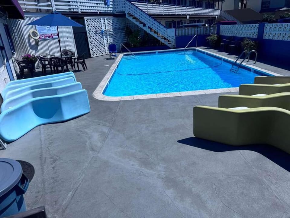 Yes, a swimming pool is available for use at Mission Bay Motel. Enjoy the water!