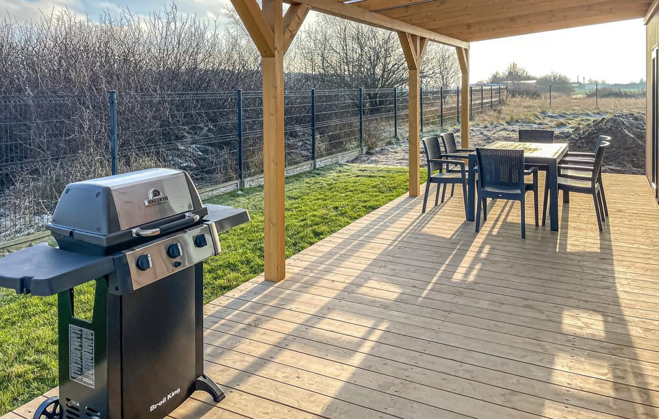 Step out onto the covered wooden terrace and enjoy time together outdoors. The spacious table invites you to socialise in the evenings with tasty dishes from the barbecue. There is also a hot tub for relaxing moments. The shared sauna offers you additional opportunities for relaxation. End the day in the cosy warmth.