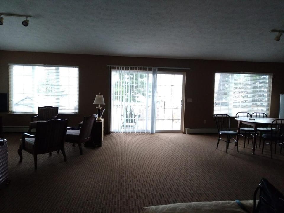 We stayed in two spaces — the large upper-level room with three queen beds above the office building, and a cozy lakefront cottage. The large room was unique (as described) and worked out wonderfully for our family — grandparents, adult children, and grandbabies. It offered plenty of space for gathering when we weren’t out exploring town. Be aware there are quite a few stairs to reach it. The windows were tricky to operate and could use a good cleaning, but with some effort we were able to get them open and closed when needed.