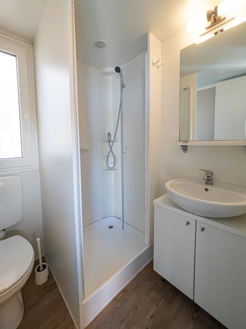 Yes, a swimming pool is available for use at Punta Falconera camping & village. Enjoy the water!