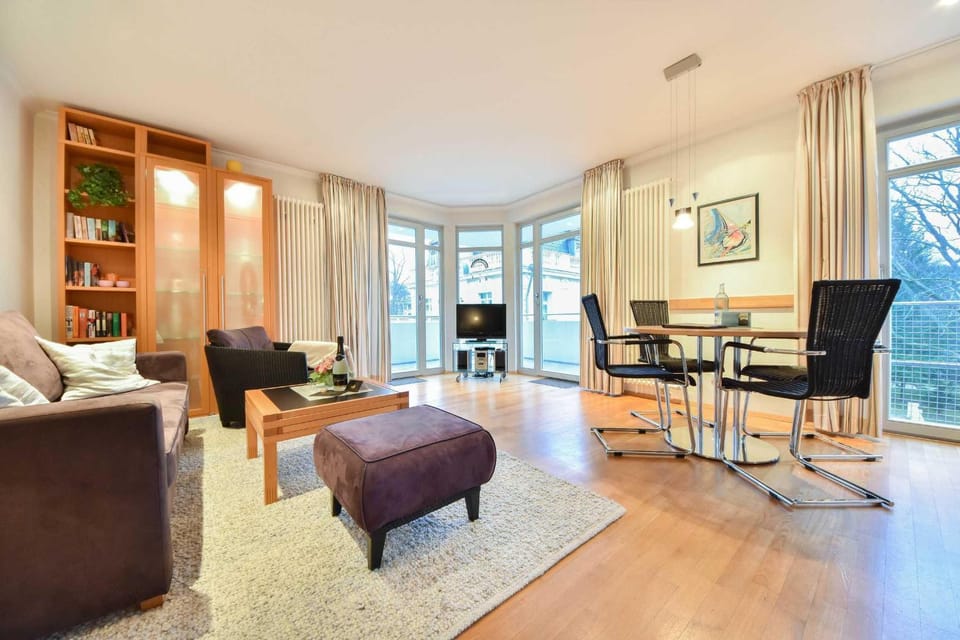 Super Lage im schönen Garten der Villa Bleichröder. Die Wohnung selbst hat uns auch sehr gut gefallen. Ein Plus auch die Tiefgarage mit dem privaten Parkplatz. Oberflächlich betrachtet war auch die Sauberkeit sehr gut. Wir würden auf jeden Fall wieder buchen.