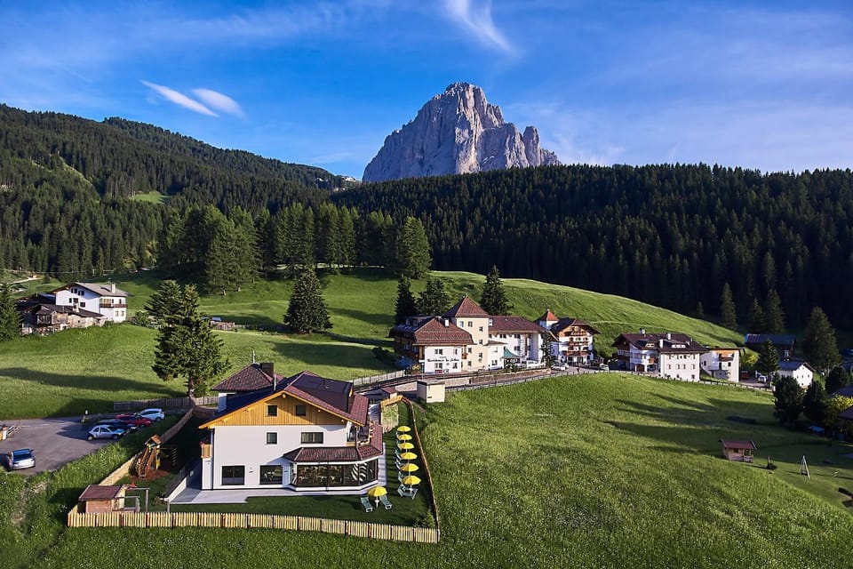 Wow we loved our time here. Firstly, the staff were all exceptionally friendly and welcoming. We booked a basement room on booking, on arrival we were given a room on L1 with a balcony with a gorgeous view, we sat here every morning having our coffee and breakfast. Our room was much larger and better equipped than we were expecting. The bed and pillows were very comfortable. The kitchen was well equipped, we made breakfast and dinner here every day with no problems. The wellness centre with the 2x saunas, cold shower, swimming pool (with amazing views) and spa were all amazing, we used these daily too (how can you not). Large parking garage underneath for safe car parking, bike parking in garage too. 15min walk down the hill to Selva town, with lots of walks and hikes and bike tracks around. Free bus passes with the accommodation too so easy to get the bus at bottom of the hill to Ortesei for Seceda and Alpe De Suisi. Drinks at the bar downstairs were well priced for location and convenience (Hugo Spritz €5.50 with snacks). I could go on and on, but all in all we loved it and will definitely be returning when we return to the Dolomites! Thank you!