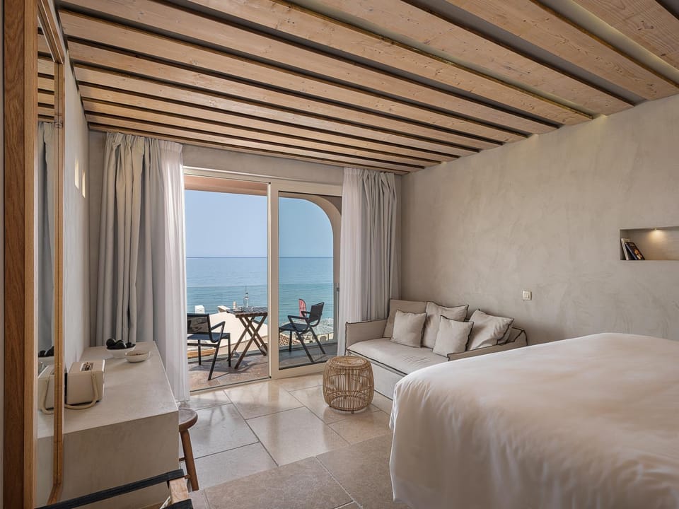 Located right on the beach in Agia Marina Village, The Theodore Boutique Hotel- adults only 16 plus offers uniquely designed units with garden or Cretan Sea views, and free WiFi throughout. A beachfront bar serving signature cocktails is featured.