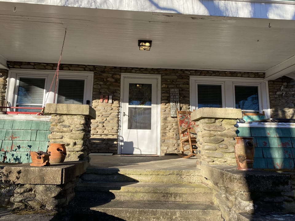 This is a quaint and newly renovated 1930’s stone cottage. It sits in the blue ridge mountains, in the heart of Black Mountain, NC. It is located in a quiet neighborhood so you can relax, but also just a short stroll to several wonderful restaurants, pubs, and shopping. Nearby is a lake, hiking trails, the blue ridge parkway, playgrounds and a beautiful golf course. Black Mountain is charming and has so much to offer. Asheville is just a 10 minute drive. The home has a beautiful front porch, as well as a large fenced in back yard, for grilling, a bonfire, game of corn hole, or relaxing in the hammock. There is a large covered area so you can enjoy even if it rains. The master bedroom has a queen size bed, the second bedroom has a queen size bed, the living room has a sleeper sofa, there is a cot upon request. The home is equipped with flat screen T.V.'s in both bedrooms and living room, cable, internet, a DVD player in bedroom, and DVR in Living room. The home also has books, games, puzzles, corn hole, dartboard, hammock and sandbox. Stowed away we have a pack n play, stroller and high chair for the little ones. We hope you enjoy the exciting and peaceful living of the Appalachian Mountains while at slow pace cottage!
