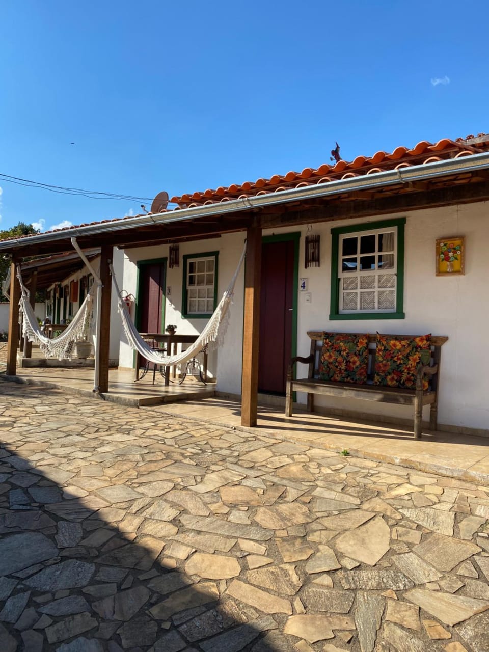 Cama super bem arrumada e confortável. O local é bem silencioso, uma paz. Ótimo café da manhã. Uma lixeira, na varanda, ao lado da porta dos quartos. Isso faz diferença.