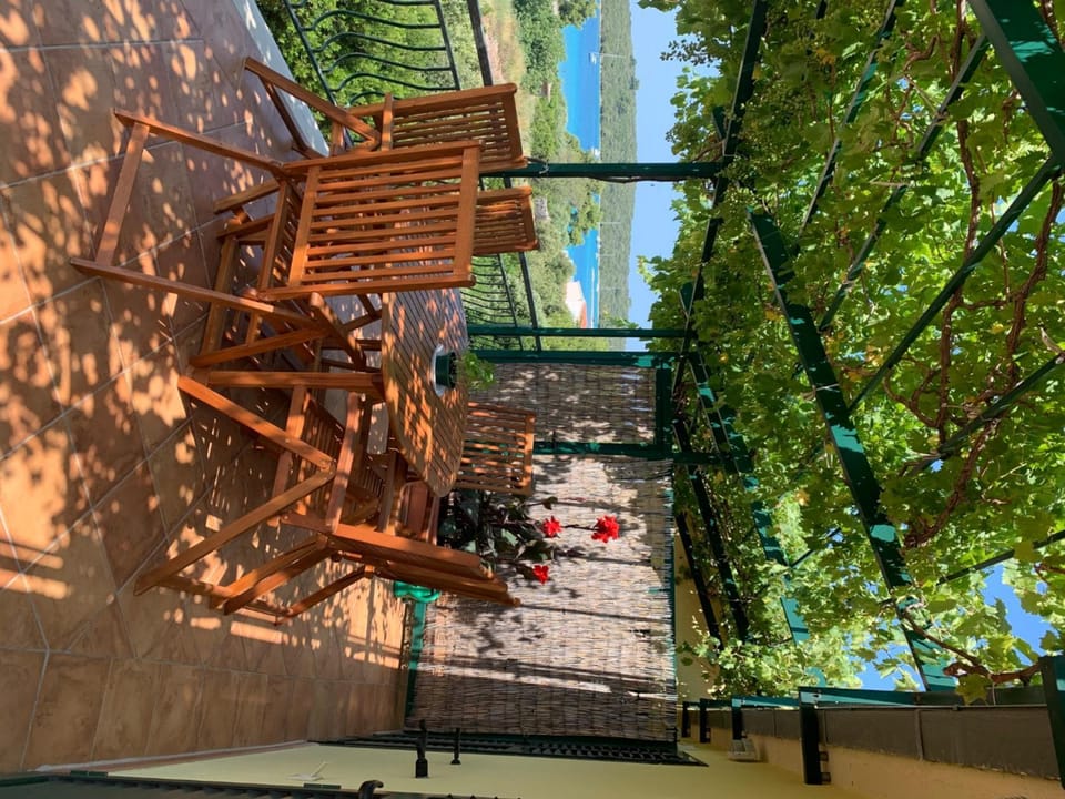 Balcone con vista mare e tavolo dove poter mangiare all'aperto (orientato verso il tramonto).