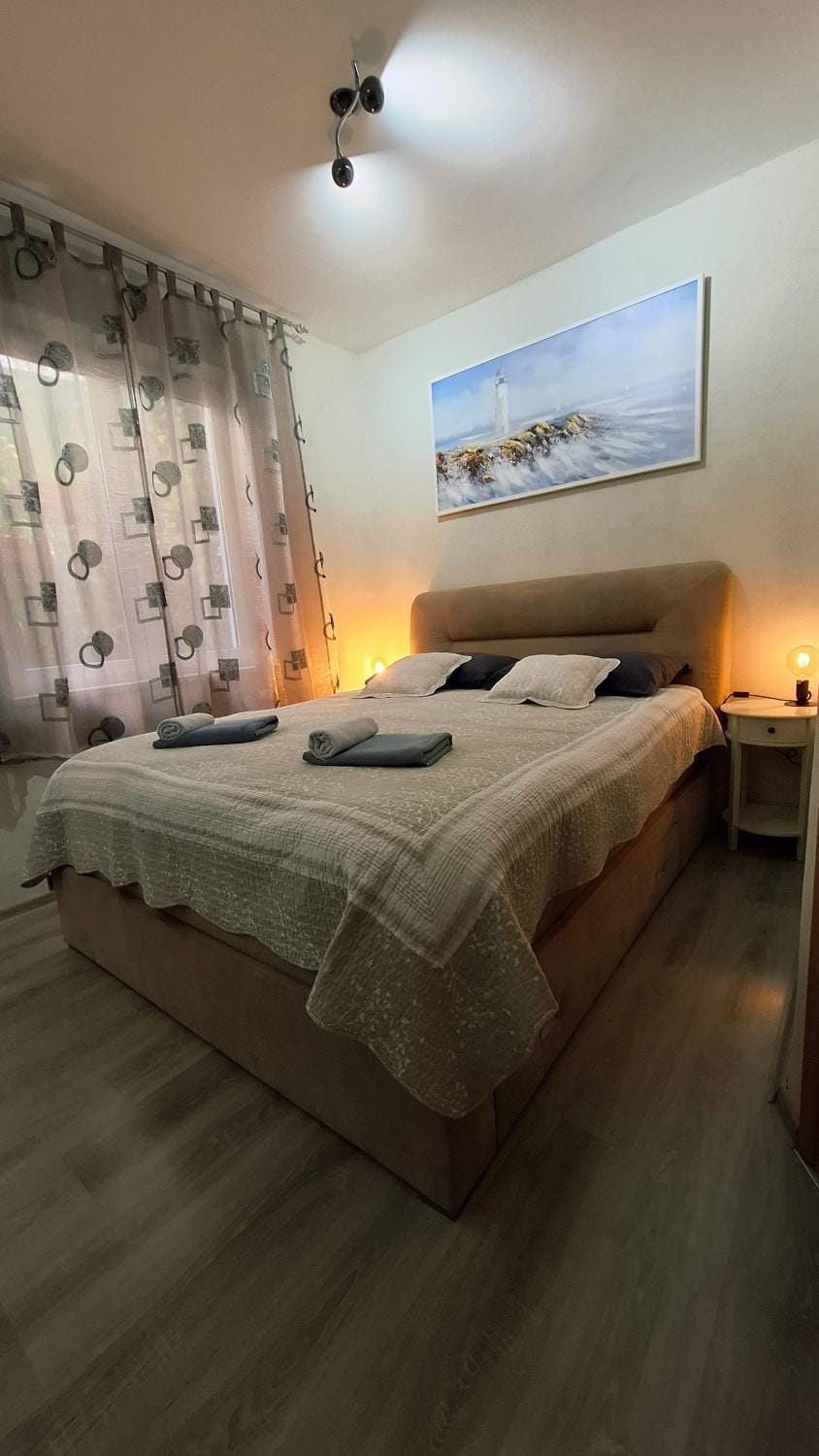 Beautifully decorated apartment with a nice view overlooking the harbour. Clean, comfortable and spacious with everything we needed including information about the surrounding area. Parking was reserved for us. Nice 20 to 25 minutes walk to the Old City which we enjoyed. I highly recommend this place.