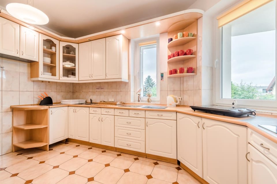 Prostorná kuchyň a koupelna. Parkování zdarma.