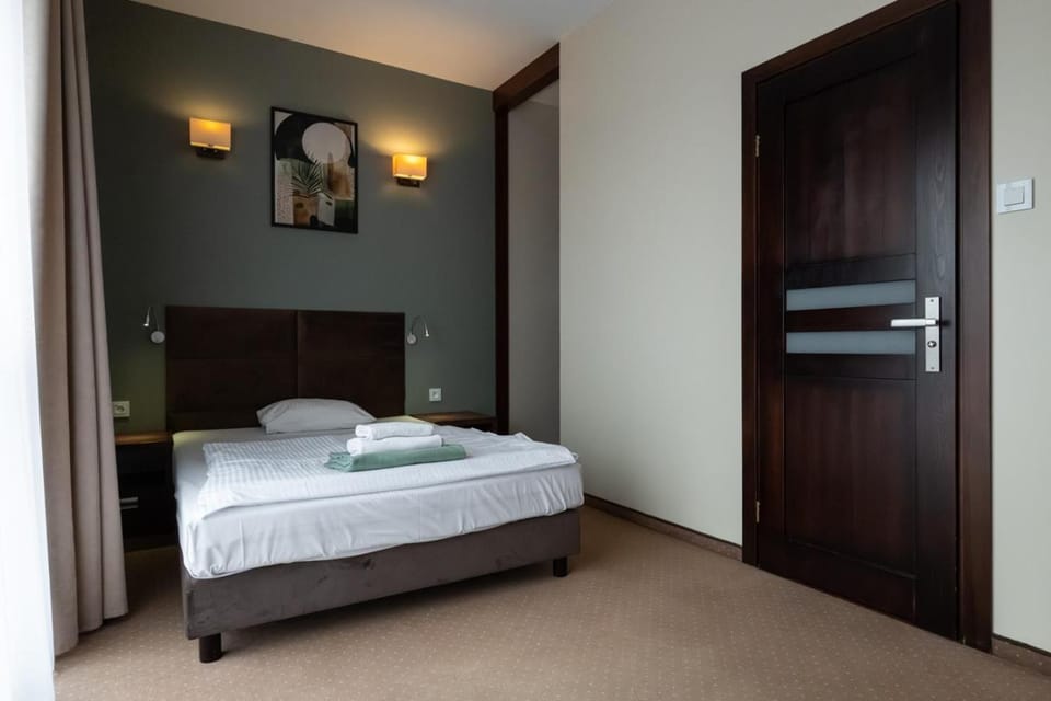 Pokój duży i cieplutki. Kawa i herbata w holu. Pyszne śniadanie. Duży parking.