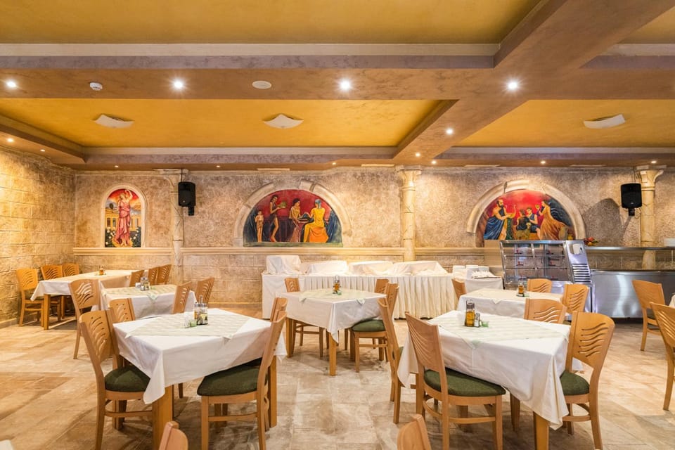 Храната е вкусна,съвсем достатъчно да се нахрани човек,персонала в кухнята е усмихнат и приветлив,разположението на хотела е добро и близко за разходка до центъра.Цените на свободна консумация за храна и алкохол са много добри.